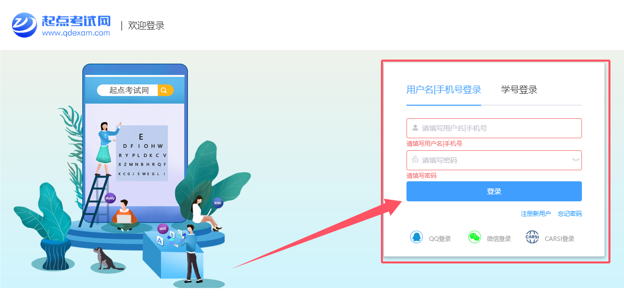▶ 起点考试”微信公众号登录