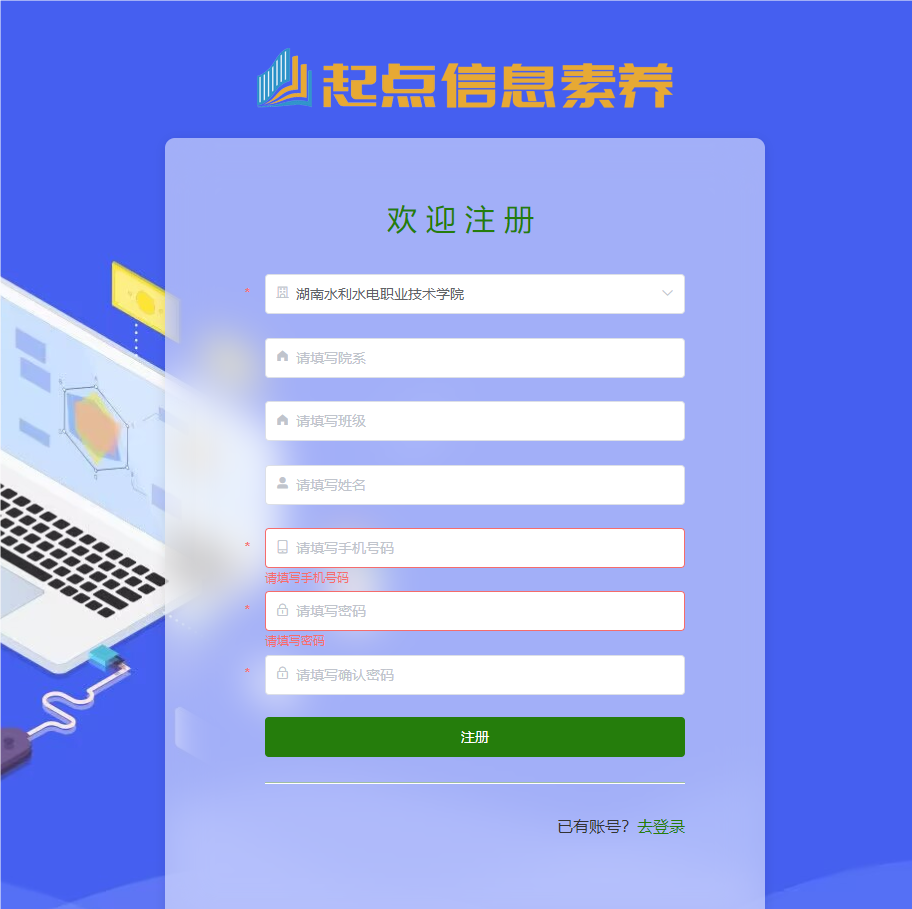 学校提供学生信息。起点客服将学生信息录入《信息素养大赛网站》,录取信息的学生,可以使用录入的学号作为登录账号,密码默认为学号;学校提供的信息必要字段为:学号、姓名、学校。